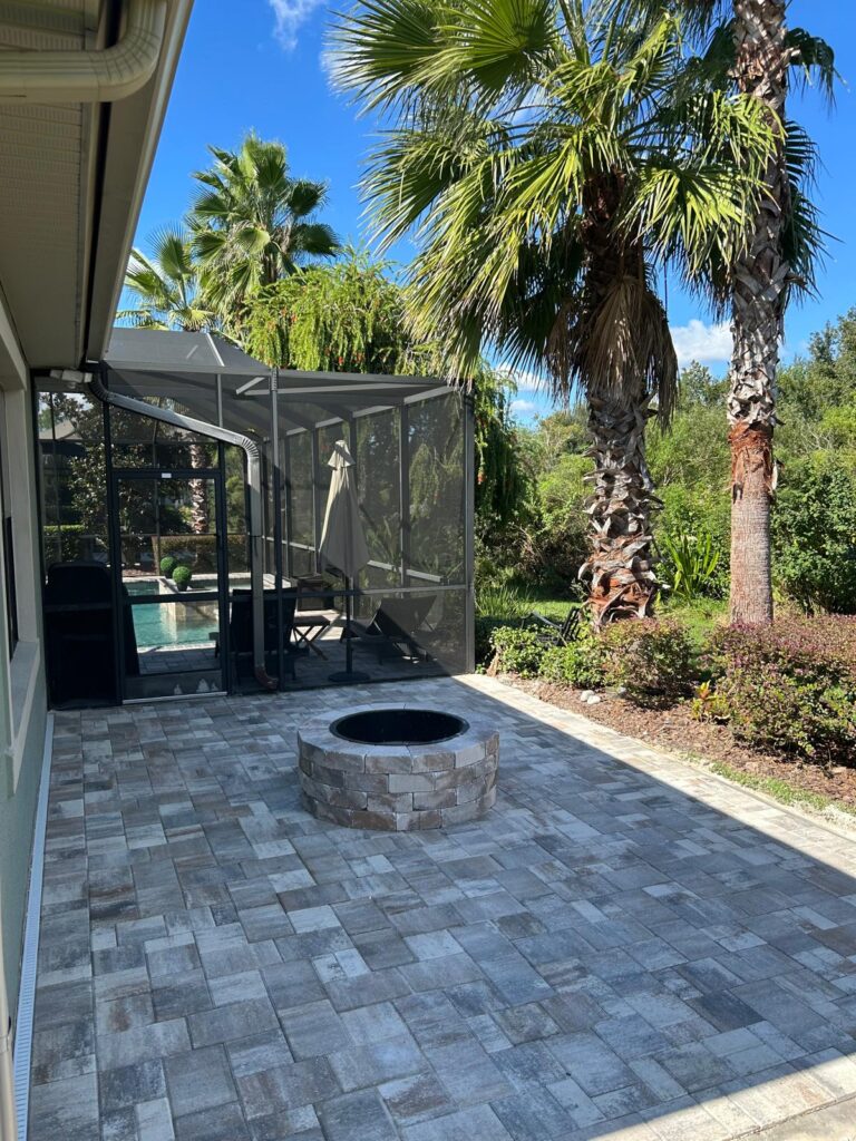 - Pavers around your fire pit adds a layer of protection and defines the space aesthetically.